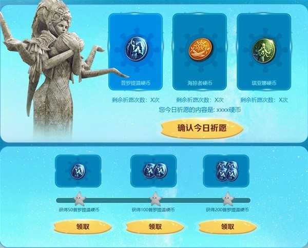 除此之外,还有每日祈愿福利等待大家,冒险家们可以在普罗提温硬币、海掠者硬币、琪亚娜硬币三种航海硬币中,选择一种航海币进行每日祈愿,祈愿后当天内获得的既定数量的航海币,均会翻倍。