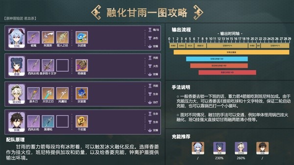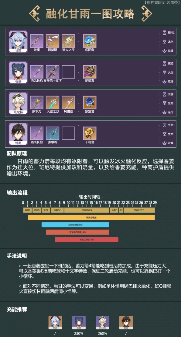 本次带来甘雨的融化流打法一图攻略,并且计算融甘各种手法的充能,还有不同武器的伤害对比。