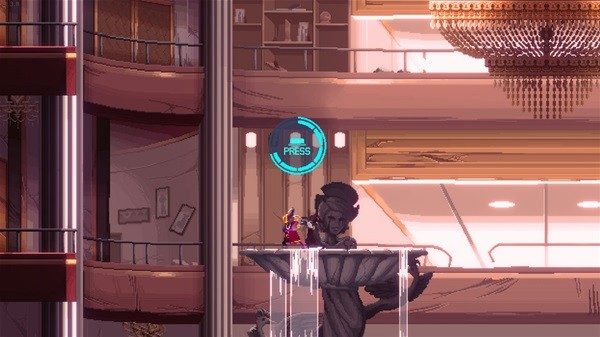 作为一款平台跳跃游戏,《闪避刺客》首先吸引人的特色在于功能强大的勾爪系统:可以快速勾上部分墙壁,完成摆荡、冲刺摆荡(可以完成折角的向上冲刺)、快速拉放绳、翻转换边等操作。