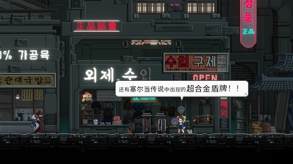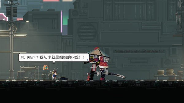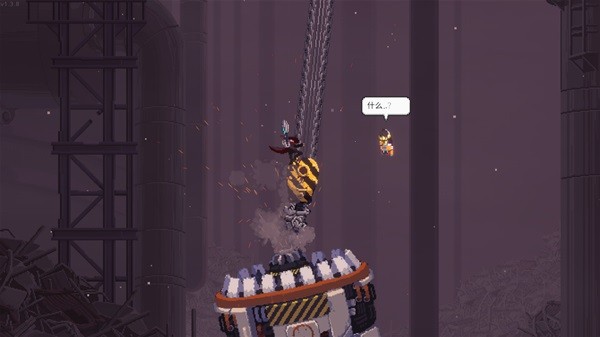 所以很多steam评测之中提到《武士刀零》,对于战斗的爽快感而言确实两者有相似之处,这种“瞬闪”的战斗风格也让它区别于《rusted moss》这样同样是包含了跳跳乐和战斗内容的游戏,就是对于空间利用更加的随心所欲,也给了BOSS更大的设计空间——在下城区的挖地虫、商业区的贾斯蒂斯和麻古总部的某避免剧透的角色都完成了让人印象深刻的BOSS战。