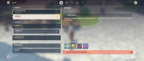 除了世界探索,玩家们获取冒险经验最常规的方式就是做任务。目前游戏中的任务种类主要有五种,魔神,传说,委托,世界任务以及突发事件。魔神和传说任务需要自己去任务栏追踪,其他任务可以看地图上的图标,或者世界跑图突然触发。