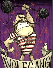 沃尔夫冈,是游戏中第三个解锁的角色。男子气概与大男人主义,为他带来了双倍于一般角色的生命值与饱食度,以及额外的力量。