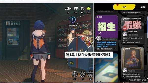 (8)如果上图家中【柜台】门口位置没有【罗德】,而是【可疑的调查员】,那就先将【可疑的调查员】任务做了,和【可疑的调查员】对话后,即可从【绳网-推送(招生)-调查员培训班火热招生】中接到第3章【战斗委托-空洞补习班】,完成该战斗委托后,【罗德】就会出现了
