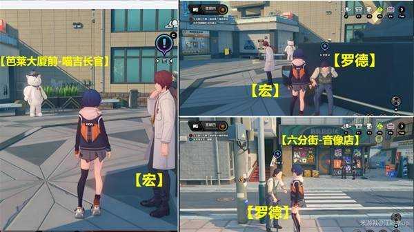 (1)前置需完成1.1版本主线任务【独家视界:卧底蓝调】,然后传送【芭莱大厦前-喵吉长官】,先和下图位置的【宏】对话,接着和【宏】旁边的【罗德】对话,然后再传送【六分街-音像店】和【六分街-音像店】对面的【罗德】对话后,即可接到第3章【探索委托-昨日舞台·其一】(芭莱魅影·其一)