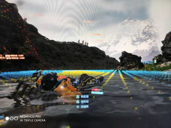 接下来就说实际应用,货物的安全区是背后第一排,工具箱,纳血袋和左右肩(没有动力骨架时腰间左右也是安全区),上述位置的货物不会被冲走,玩过水獭帽的都应该知道了。可以连接两台悬浮机,可堆货到悬浮机围栏的上两层(再往上就没试过,大家可以自己尝试),遇上再急的流水和巨大石块也不会断线,货物也不会冲走。送货送物资卓卓有余。只需要担心米尔人或登山的最后一程(一般有bt),武器对人对bt各带一箱即可。