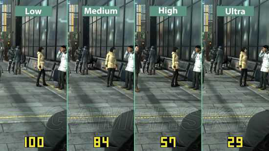单从画质方面,我们可以在视频中看出,游戏在最高画质(Ultra)和高画质(High)之间的区别还不算明显,普通画质(Medium)下游戏的画面也没有缩水多少,但与最高画质相比,显然在光影和材质细节上还是显示出较为明显的差距。最后在低画质(Low)下游戏的很多材质、贴图都有了很大的缩水,画质效果“惨不忍睹”。