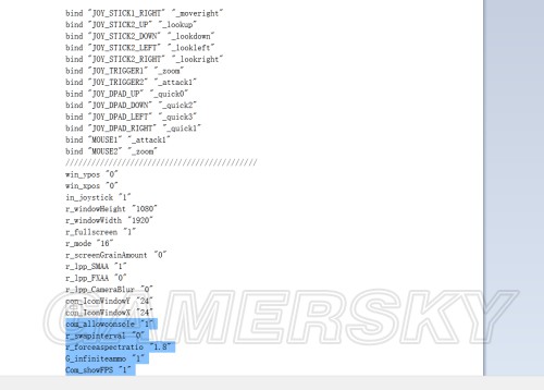 com_allowconsole "1" (加上这条可在游戏中按insert键打开控制台输入其它命令)