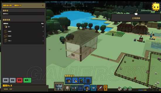下一步就是墙壁,左侧房屋图画上的墙壁可以打开墙壁细节选择。同样选择材质和纹理,之后在地基上建造自动会沿地基边界围满一圈。这样1楼的大致雏形就有了,接下来要建造2楼的地板,选择图画中的楼层地板,同样可以选择材质和纹理。然后和墙壁对齐铺2楼的地板。