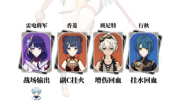 2、雷神国家队【雷电将军、班尼特、香菱、行秋】