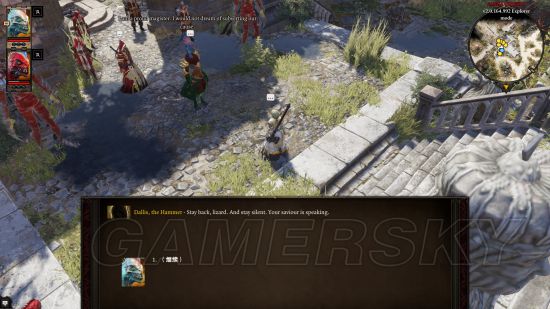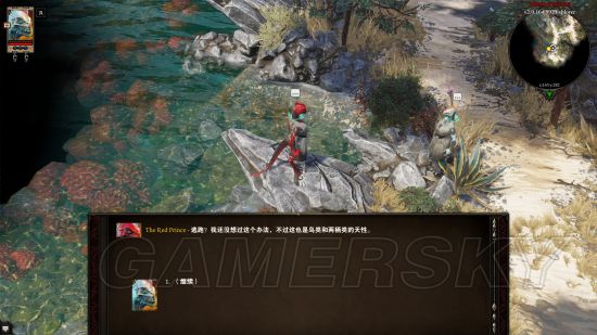 第一件事就是找这个蜥蜴人加入队伍,他是个战士。不加的话还是有点的难得,一个人和两个人的差距不是一点半点。而且他给他弄把好的双手武器也是主要输出。