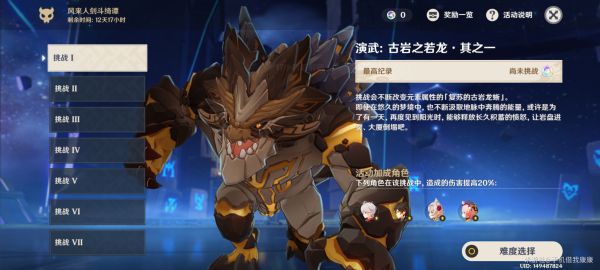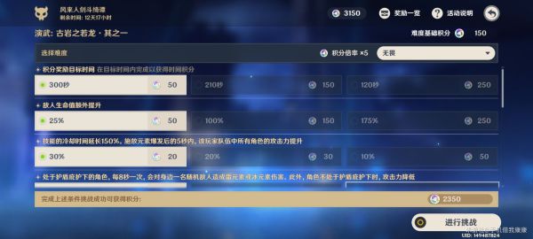 这个活动跟之前的差不多,让我们自己选择难度,手残一点的(比如我)拿个原石和名片就行,喜欢挑战难度的,也可以选择比较难的难度 而且进入后直接是大招开启状态。
