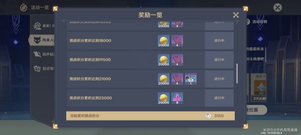 第一天的的内容就是这样,最后给大家多说一点,我自己打了几次发现 最好还是带个套盾角色,没钟离至少有迪奥娜和女仆吧 利用盾反打伤害也可以。最高分是6050