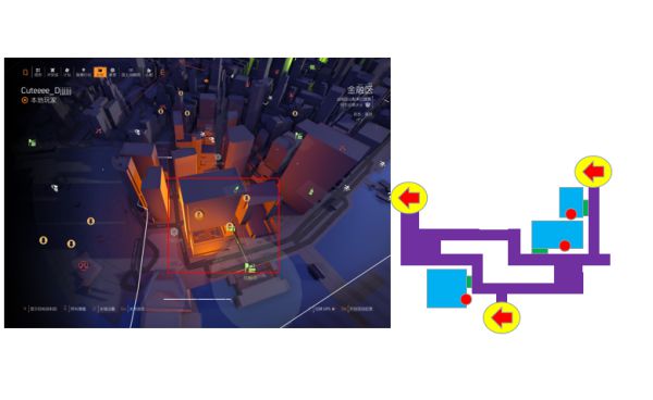 第二个发的下水道要说下,正常获取只能获得2个,第三个就是最右边的那个钥匙需要打开水阀和打电箱的操作,白色通道是从左边2黄点的那一条通道往下延伸的,被水掩埋,(左2黄点中间是水,过不去)需要在2边分别操作水阀,就可以下去了,然后在底部通道(右2黄点处的通道)在通道的2边墙上各有电箱,打掉即可。