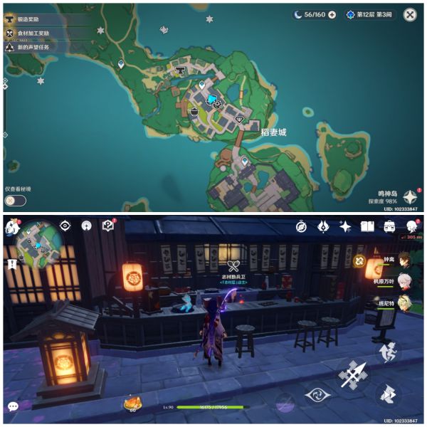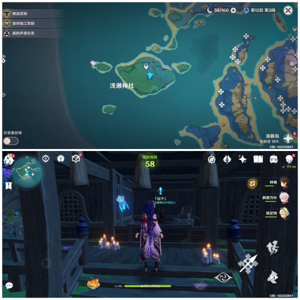 黑猫寝子需要你帮助打扫神社灰尘,灰尘在神社的四个角,使用水元素或者风元素角色进行清理即可。
