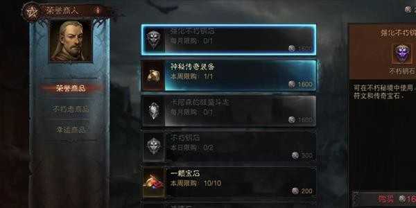 5.荣誉商人周一把每周传奇装备买一买,每月把宝石和强化不朽钥匙买一买,多的荣誉可以买钥匙或者技能石(技能石很坑,分解1个得10尘,升级一次20尘,5级用白金币提取5个技能,然后用另一个5级技能石,选一个你不要的技能,用提取的技能石中的任意一个随机技能替换你指定不要的技能,看清楚是随机,洗洗脸)