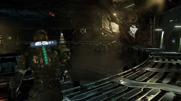 在场景构建以外,游戏在氛围营造上同样堪称一绝,前期的一个任务说明本作氛围营造的功力:随着游戏流程我们会发现需要开启一扇大门,但是电力断供,伴随引导我们会乘坐电梯去往楼上,一路上没有遇到太多阻碍就来到了电闸,这个时候重点来了:供电三路线只有两条可用,分别是电梯、电灯与房门,如果我们放弃电梯就返回不了下层,所以这意味着我们必须要关门抹黑回去——那么这个路上毫无疑问会有危险,我们也意识到了危险,然后死亡的围攻也如期而至,这种被不祥预感PUA,然后最终“墨菲定律”成真的感觉真的很酸爽,只能说《死亡空间 重置版》比《木卫四协议》懂太多了!