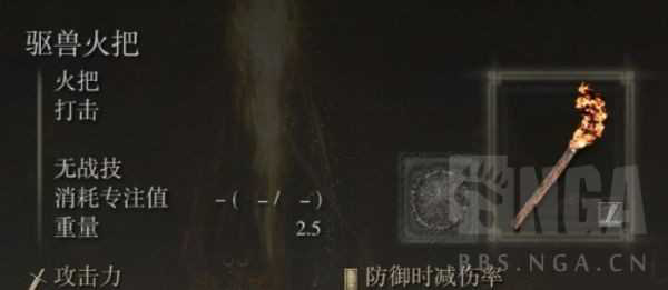 顺便一提,驱兽火把初始有战灰,建议给它打一个无战技的战灰,不影响其他武器的使用,跑图更加流畅。