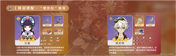 对于宵宫而言,云堇和班尼特都可理解为提供攻击力的辅助角色。