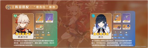 除了莫娜以外,适配宵宫的也就万叶和夜兰这两大主力的增伤辅助。