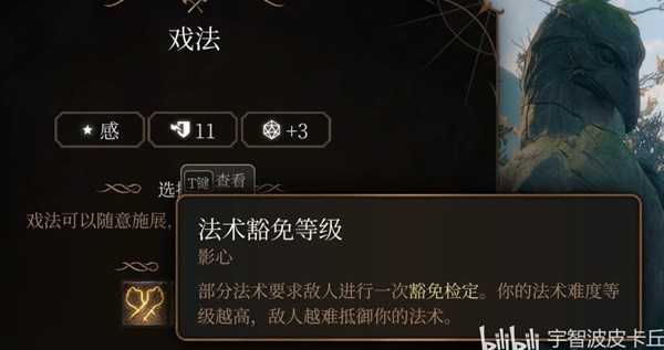 例如 戏法、法术攻击,可能有些效果会受到敌人的豁免检定,需要你自身的 法术豁免等级(可以理解为 法术命中率) 足够高