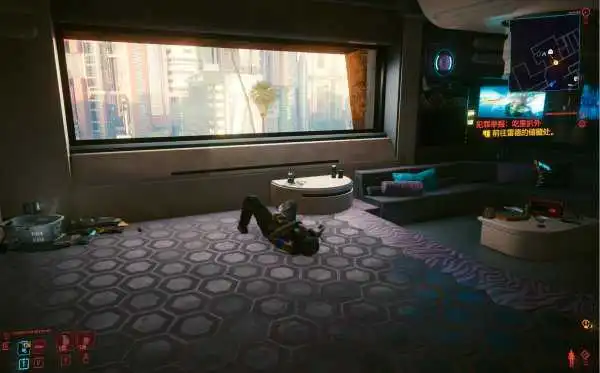 这游戏真是太神奇了!我把第二个妹子扛回家,默认这个妹子是没血条了,但是还能在地上捂着胸口,等我出去做个任务回来,公寓门是开的,妹子失踪了!应该叫灵异2077才对!