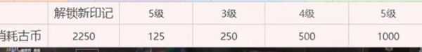 解锁和升级印记都需要消耗古币,所以必然要有一些取舍,这边我建议先把选择的印记优先提升到3级再解锁槽位,随后慢慢升至五级。