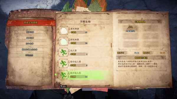 本来我想截个有幼小仙人花的图的,但是试了好几次都没出来,果然是想要什么就没什么,为了证明所言非虚放下猎人笔记图,之前抓巨大爆裂龙鱼的时候在这个区抓到了非常多花。