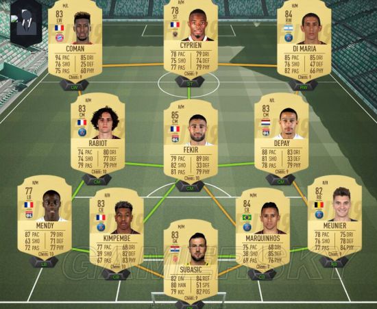 最后一个联赛是法甲,个人感觉性价比最高的联赛,虽然你一眼看下去会觉得很奇怪,为什么cyprien在前锋德佩在中场,因为法甲的左边锋位置除了内马尔就是内马尔,并没有其他选择,所以只好混搭一个法国人科曼进去,为了球员都能满化学,所以才把位置放成这样。