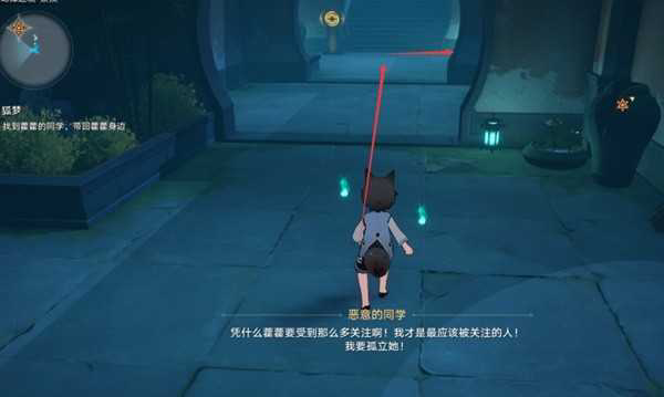 根据任务指引,从藿藿房间出来直走,第一个路口左转,找到带有鬼火的门穿过去。