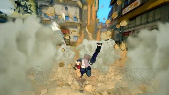 朝向前方跳跃,以拳击粉碎地面的忍术。