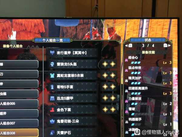 重点是第二套适合纯新手和比较刚的玩家,不要攻击输出方面就靠弱特和迅龙武器的会心配合超会3,其他就是关键了,这一作开了电锯收武器和变剑形态会解除电锯,所以要想玩的爽就得一直保持电锯模式回避距离3绑定,既然是新手那就肯定会经常挨打所以我建议带上精灵加护昏厥耐性3和回复速度3红血回血4倍,核心思路就是一管血多抗几下非常过瘾。用电锯模式玩多了怪的攻击动作基本也都掌握了再去玩别的武器就比较容易上手了。为什么不用别的武器去熟悉呢?别的武器能有电锯得劲吗!