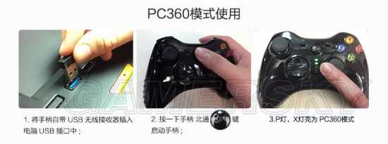 1.把手柄调为PC360模式,将手柄USB(自带USB接收器)接入电脑USB中;