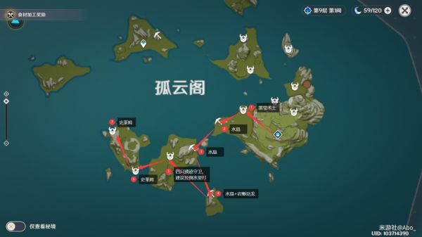 这条路线有最高世界等级的怪,例如你世界等级为四级,那么这条路线上的所有的怪均为60级,例如你世界等级为五级,那么这条路线上的所有的怪均为70级,以此类推。路线建议全程食用料理。