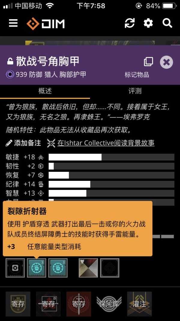 接下来就具体说一下配装,属性技能我选择的是虚空中,特点所有技能伤害都能让敌人附带引爆器,击杀后既能引爆又能回血回手雷近战cd,而手雷带上两个神器模组,又能克制超载勇士和削弱敌人,削弱的效果就类似于虚空猎射箭大招,令所有伤害变为黄字,所以配装的重点就在于尽量减少技能cd,最基本的两点就是戒律堆到90或者100,然后穿上至纯光能护心甲,而其他减cd的模组可以按自己喜好配搭使用,推荐技能的使用顺序是手雷→近战→屏障,如果还是觉得技能回复慢的话可以试试插两个折射器模组。最后祝愿大家都可以做一个快乐的工具人吧