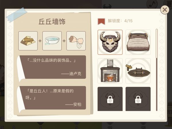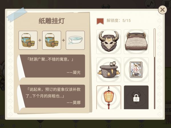 2.每种家具都有对应固定的配方,重复的配方只能获得重复的家具,少部分配方可能会制作出「奇怪的产物」。