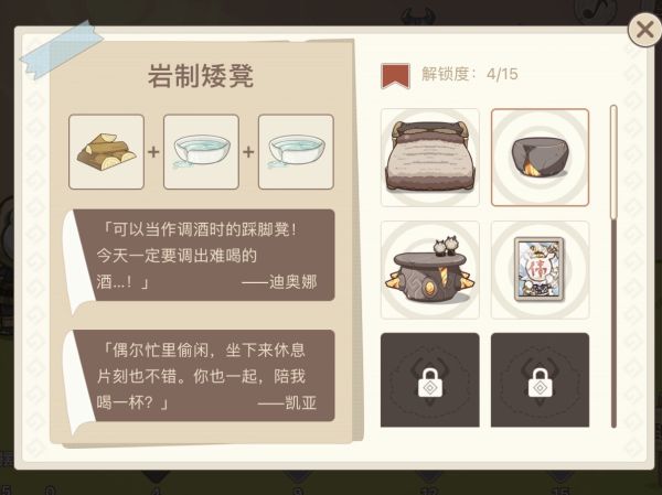 3.制作家具后,便无法中断制作。如果不小心做错了,也会消耗已经放入的材料,所以大家制作家具的时候一定要看清楚哦!