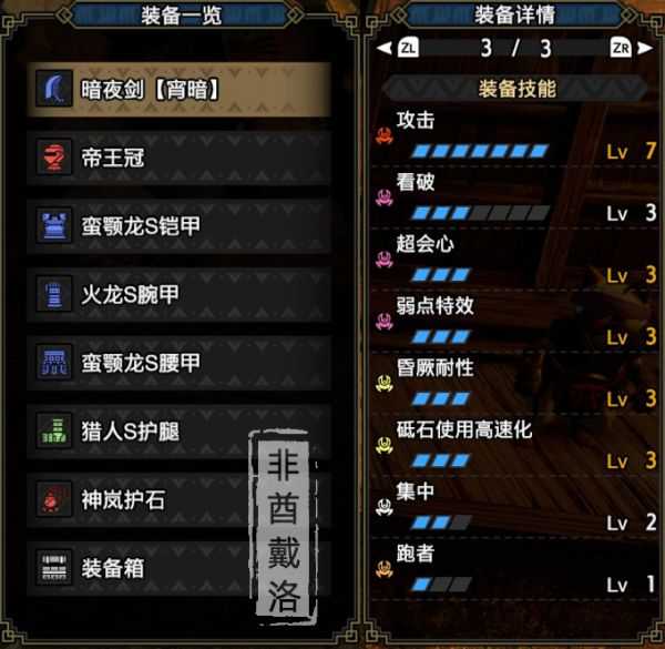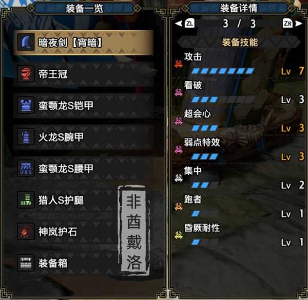 可以看出我这套是只出了2级的集中,如果是从怪物猎人世界过来的猎人,可能会问为什么只出2级,而没有出3级。