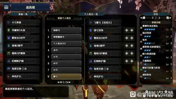 弓的选择的话目前基本就是百龙了,连射5太香了,物理弓可以配斗弓
