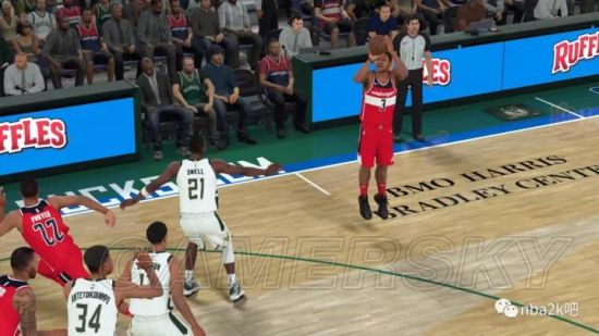 前面的跑位和上面一致,这次假挡真切,遇到雄鹿队员篮下协防,分底角莫里斯投射3分