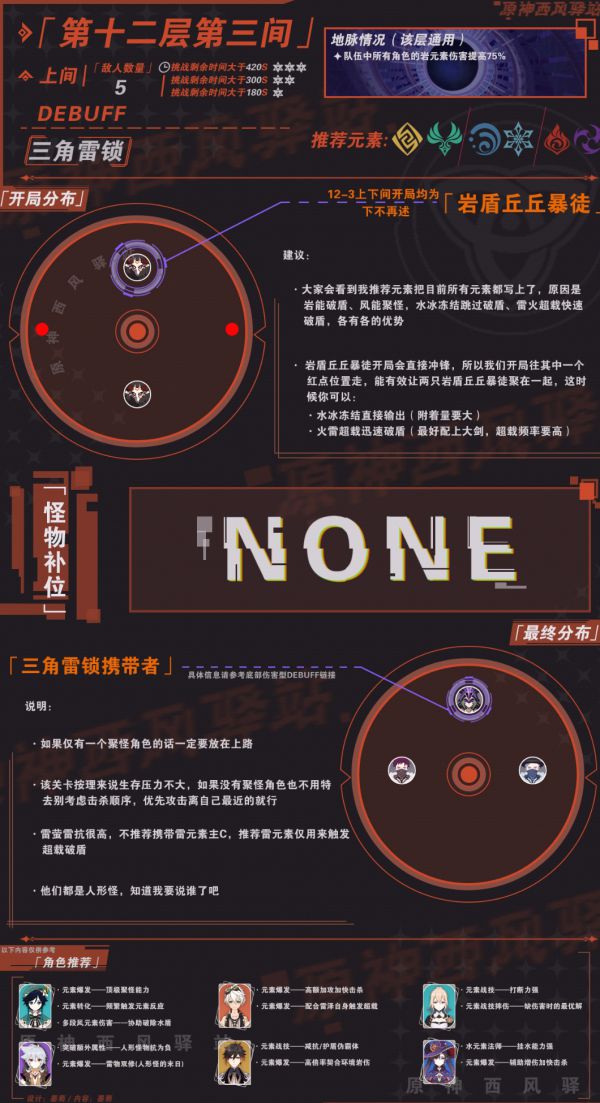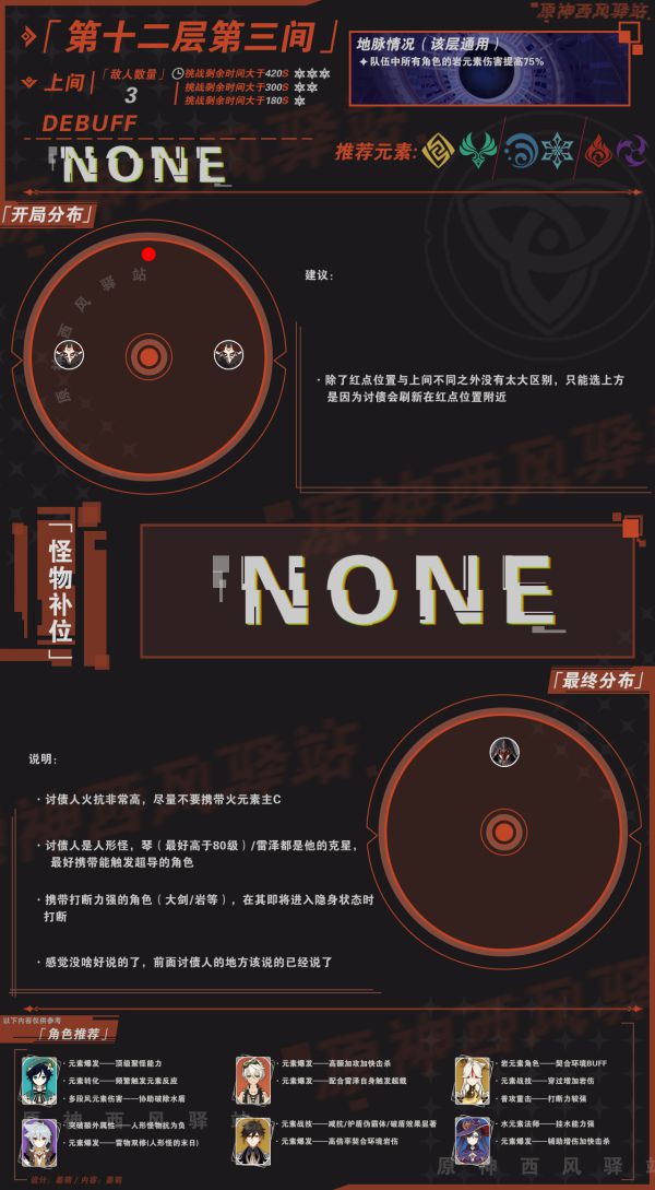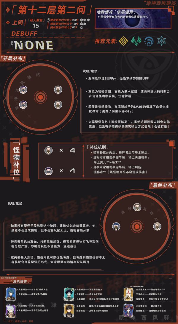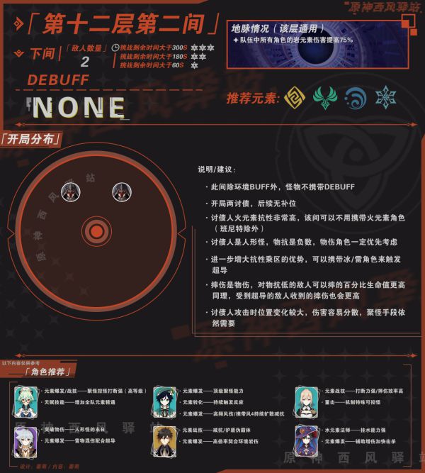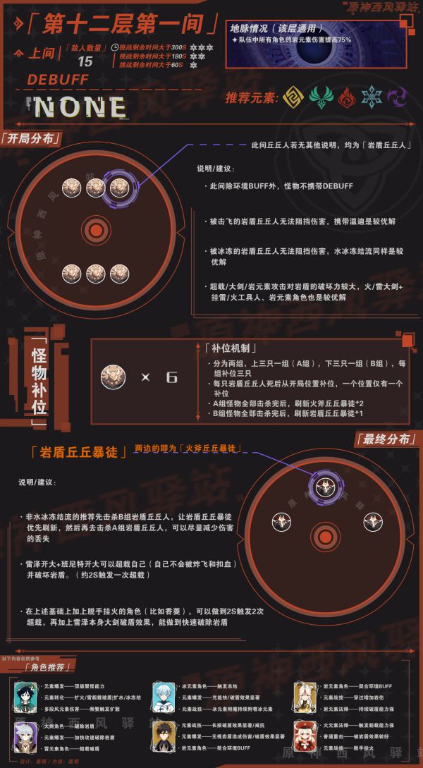 个人认为11层比12层略难一些,12层没有环境DEBUFF,而11层搞不好整把下来放不出一个元素爆发。