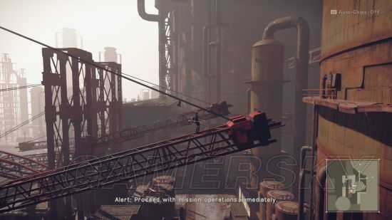 机器人视角后开始操作9S,会收到21O的通讯,让你瘫痪工厂的防御设施。这时不要去驾驶飞行器而是走去别的方向。比如,直接从起重臂上跳下去。