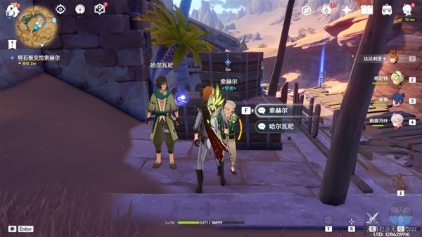 1.在完成二重证据的基础上,我们先来到阿如村,找到索赫尔对话。
