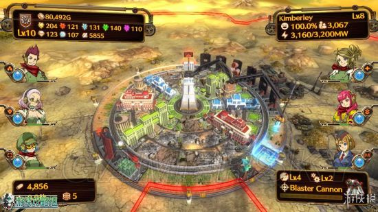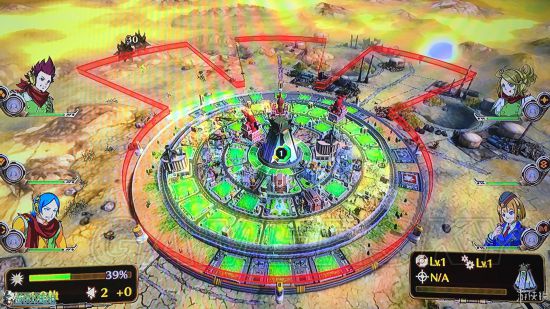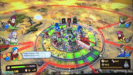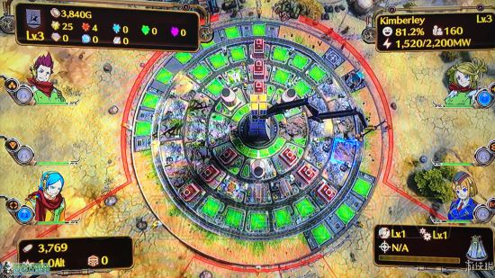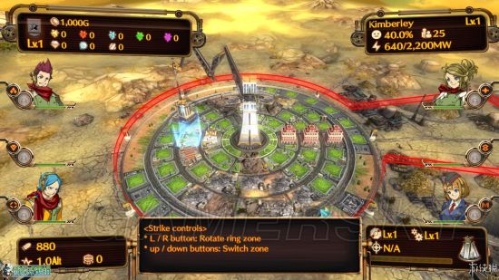 战斗阶段,之前布置的防御设置这才露出了真面目(没想到你们还有两副面孔),之前阶段与住宅区无异。鉴于整个城市是圆的,因此敌人可能出现在任意方向,出现之前会在相关方向出现不断闪烁的提示,而布置的建筑可能并不能全局覆盖(不排除后期可以开垦荒地)。这时候本作的一大特色展现出来,玩家可以操作每一环独立地发生转动(一旦敌人进入某一环则转动不能),以应对不同方向出现的敌人,并且当建筑转至同一条直线上还会合♂体,变成进阶版,伤害和射程都会提升。