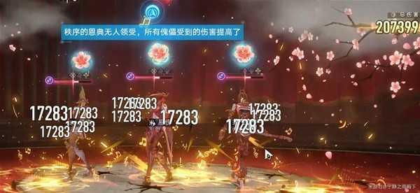 此外,弱破在本期混沌回忆最大的机制收益,便是三个傀儡全被击破时,敌方全体扣除15%生命上限的生命值(约结算20.7万),并获得50%易伤,同时额外推条: