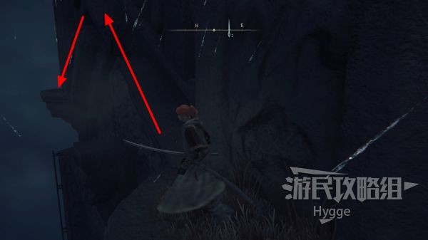 消灭一名士兵后继续向左,在前方篝火旁通过梯子向上。