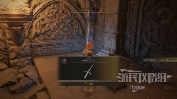 消灭神皮使徒后打开前方房间的宝箱即可获得狩猎神祇大剑。