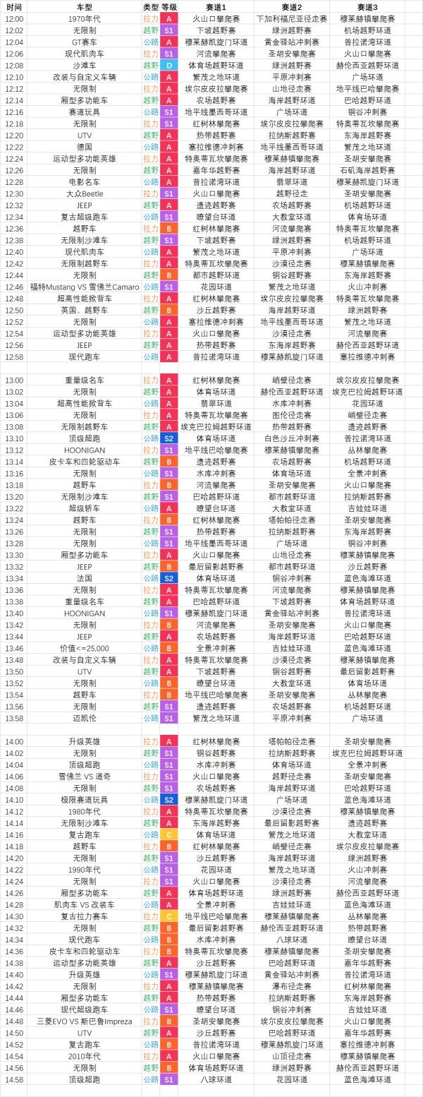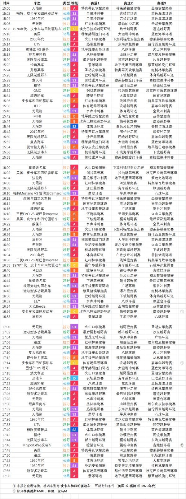 只能记录这么多,有几场赛事未报名查看详细车辆限制,图中已注释。