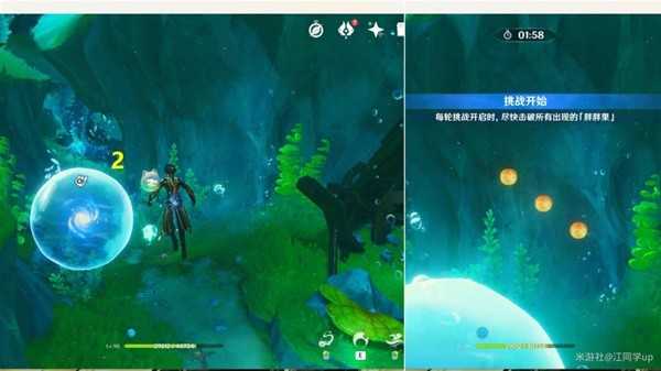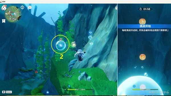 (2)到2能量球位置后,可直接开启挑战,也是接着打完【胖胖果】挑战后,即可拾取2能量球了