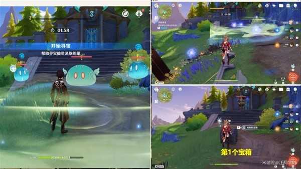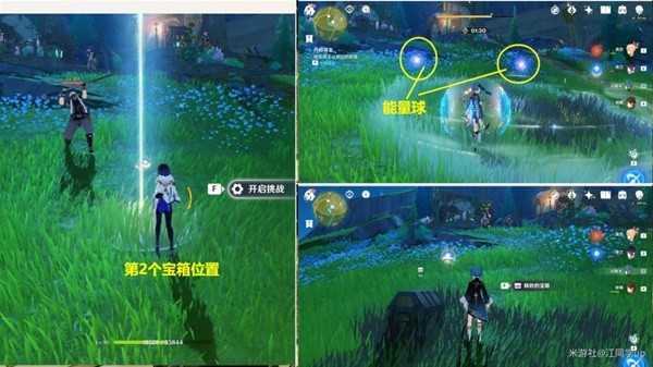 (2)拾取前3个能量球,到第1个宝箱位置,开启挑战,打完怪,再收集完附近的能量球后,即可挖掘出第1个宝箱了