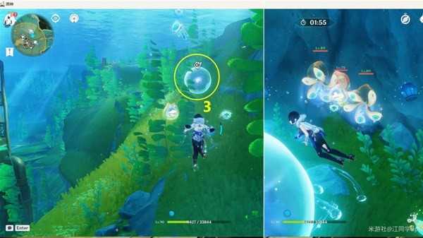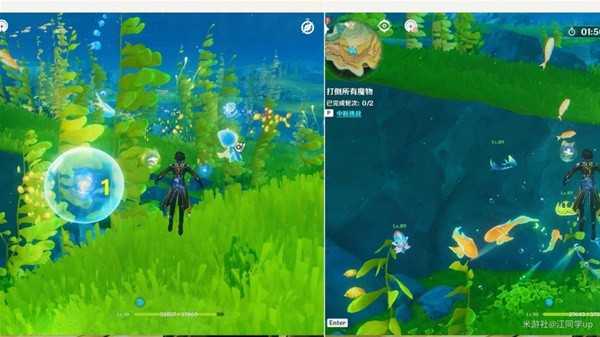 (1)到1能量球位置后,先获得旁边【章鱼的能力】,然后靠近1能量球开启挑战打完怪,长按E技能打怪即可